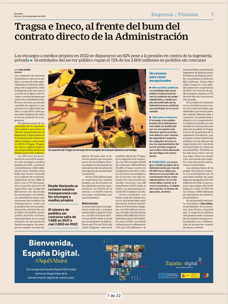 GeneralTRAGSA E INECO AL FRENTE DEL BUM DEL CONTRATO DIRECTO DE LA ADMINISTRACIÓN: 2.600 MM€ EN PEDIDOS SIN CONCURSO (ENLACE A NOTICIA COMPLETA) 27/10/202327/10/2023 - por Aecic